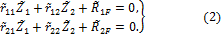 линейных перемещений этих узлов Z1 и Z2, т.е.