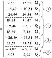 8. Вычисление матрицы концевых усилий в заданной раме по формуле (29).