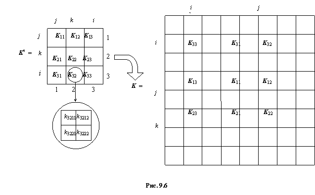 Матрицы жесткости элементов могут формироваться и храниться в памяти ЭВМ в своих, локальных системах осей координат, в общем случае отличных от глобальной системы осей координат. В данной ситуации при помощи специальной процедуры эти матрицы должны быть перестроены для глобальной системы осей координат.