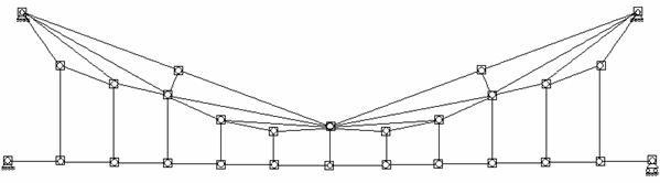 Например, конечно-элементная схема висячей системы, изображенной на рис.9.14 содержит в себе 28 шарнирных узлов, следовательно характеризуется 56 степенями свободы.