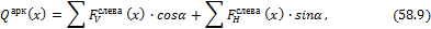 найдем продольное и перерезывающее усилия по формулам (58.9) и (58.10) (рис. 58.9).