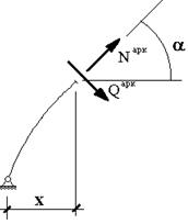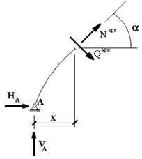 После того, как определены опорные реакции, перерезывающие и продольные усилия в арке находятся точно также, как в статически определимой трехшарнирной арке по формулам: