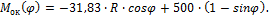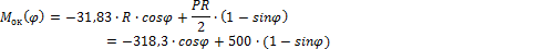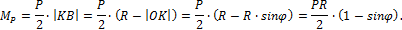 На левой половине арке с учетом того, что угол φ отрицательный, изгибающий момент окажется равным