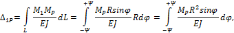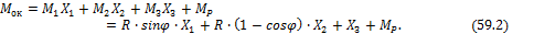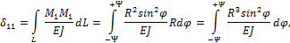 Выражения для изгибающих моментов во вспомогательных состояниях для арки кругового очертания (рис. 59.4 - рис. 59.6) примут вид: