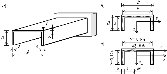 Для корытообразного профиля поперечного сечения бруса (рис. 15.8, б), имеем: