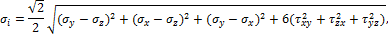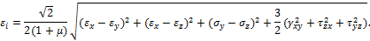 Условия перехода из упругого состояния в упруго-пластические могут быть определены по формулам одной из гипотез предельного состояния.