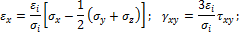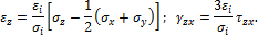 Для сложного напряженного состояния имеем линейные соотношения обобщенного закона Гука: