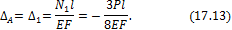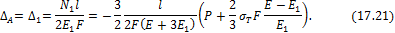 Принимая Е = Е1 из (17.25) получим решение задачи в упругой постановке, которая полностью согласуется выражением (17.12). Перемещение сечения А на третьем этапе нагружения определяется по выражению: