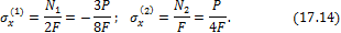 На первом этапе нагружения, когда в обоих участках материал конструкции деформируется по закону Гука, учитывая, что система один раз статически неопределима усилия N обоих участков определяется обычными приемами. Из условий равновесия имеем: