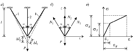 Так как зависимость между напряжениями и деформациями становится нелинейной и для каждого материала определяется видом диаграммы растяжения, единых для различных материалов расчетных формул, учитывающих пластические деформации, получить невозможно. При выводе расчетных формул диаграммы растяжения упрощают (схематизируют). Для материалов, имеющих площадку текучести, например для низкоуглеродистых сталей условная диаграмма зависимости напряжения от деформации состоит из наклонного и горизонтального участков и носит название диагpаммы идеально yпpyго-плаcтичеcкого тела, или диагpаммы Пpандтля.