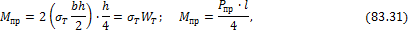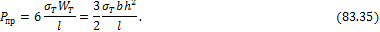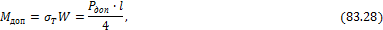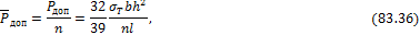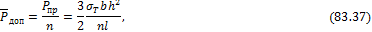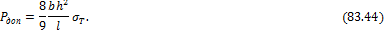 Принимая во внимание результаты расчетов по методу допускаемых напряжений и по методу предельного равновесия, соответственно (83.44) и (83.46), составим отношение: