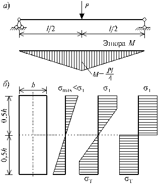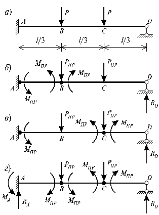 При расчете конструкций по методу предельного равновесия предполагается двухстадийный характер деформирования материала: в первой стадии материал подчиняется закону Гука, пока напряжения не достигнут предела текучести; а затем во второй стадии, предполагая, что в нем в определенной стадии нагружения в опасных сечениях беспредельно развиваются пластические деформации при постоянном напряжении. С появлением пластических деформаций нарушается линейная зависимость между напряжениями и деформациями по закону Гука, и все расчетные формулы, вывод которых основан на этой зависимости, становятся неприменимыми. Нарушается прямая пропорциональность между действующими на элемент конструкции нагрузками и возникающими в нем напряжениями и деформациями. Становится неприменимым один из основных принципов сопротивления материалов – принцип независимости действия сил.