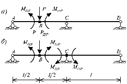 Для расчета заданной системы по методу предельного равновесного состояния, предварительно выразим значения моментов в сечениях 1 и 2 через внешнюю силу P и реакции X возникающей в месте шарнирного опирания: