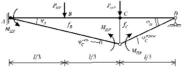 Первый механизм разрушения образуется при возникновении пластических шарниров в сечениях А и С. Составим уравнение равенства работ внешних и внутренних усилий:
