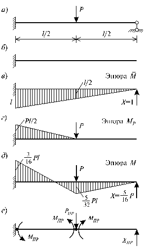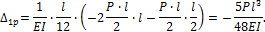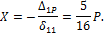 Основная система представлена на рис.83.17, б. На рис.83.17, в и рис.83.17, г в основной системе изображены эпюры моментов от силы X = 1 и P. Далее, по формуле Мора вычисляем коэффициенты канонического уравнения: