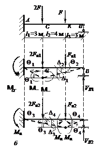 Рассмотрим второй возможный механизм разрушения балки. Он будет при возникновении пластических шарниров в сечениях А и К (рис. 83.19, б).