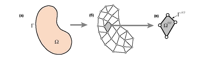 Конечно-элементная дискретизация области тела: (а) – исходная область