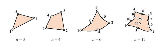 двумерных конечных элементов, определяемых различным числом узлов.