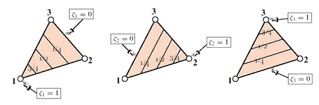 геометрически представляют собой множество прямых линий, параллельных стороне, противоположной i-му узлу.