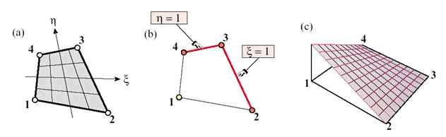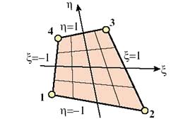 Рис. 9.66. Четырех-узловой четырехсторонний билинейный элемент.
