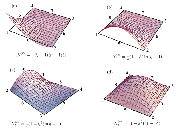 Рис. 9.69. Графики характерных функций формы биквадратичного конечного элемента.