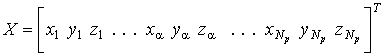 и глобальный вектор координат узлов, содержащий координаты всех узлов сетки: