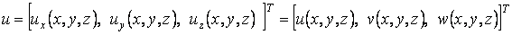 u=u(r,t) - вектор перемещений, зависящий от времени t и радиуса вектора точек сплошной среды r;