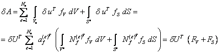 Заметим, что записанные выше элементные и глобальные вектора узловых сил статически эквивалентны объемным и поверхностным силам, заданным на данном элементе или во всем объеме тела.