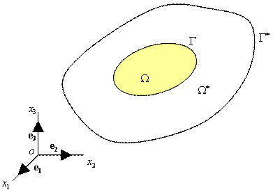 Рис. 9.80. Постановка пространственной задачи теории упругости.