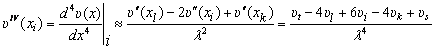 Четвертая производная (четвертая разность) в точке i – это вторая разность от вторых разностей в точках l, i и k: